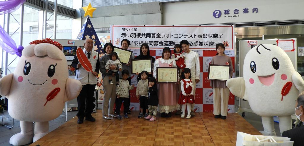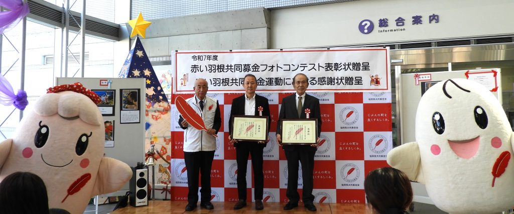 令和7年11月23日(日)に大野城市ふくしフェスティバル2025(会場:大野城まどかぴあ)において、令和7年度赤い羽根共同募金フォトコンテストで入賞された方への表彰状贈呈と、10年以上の募金運動功績があり、現在も運動にご協力を頂いている京食品株式会社様、有限会社関山工務店様に福岡県共同募金会から届きました感謝状の贈呈をいたしました。
